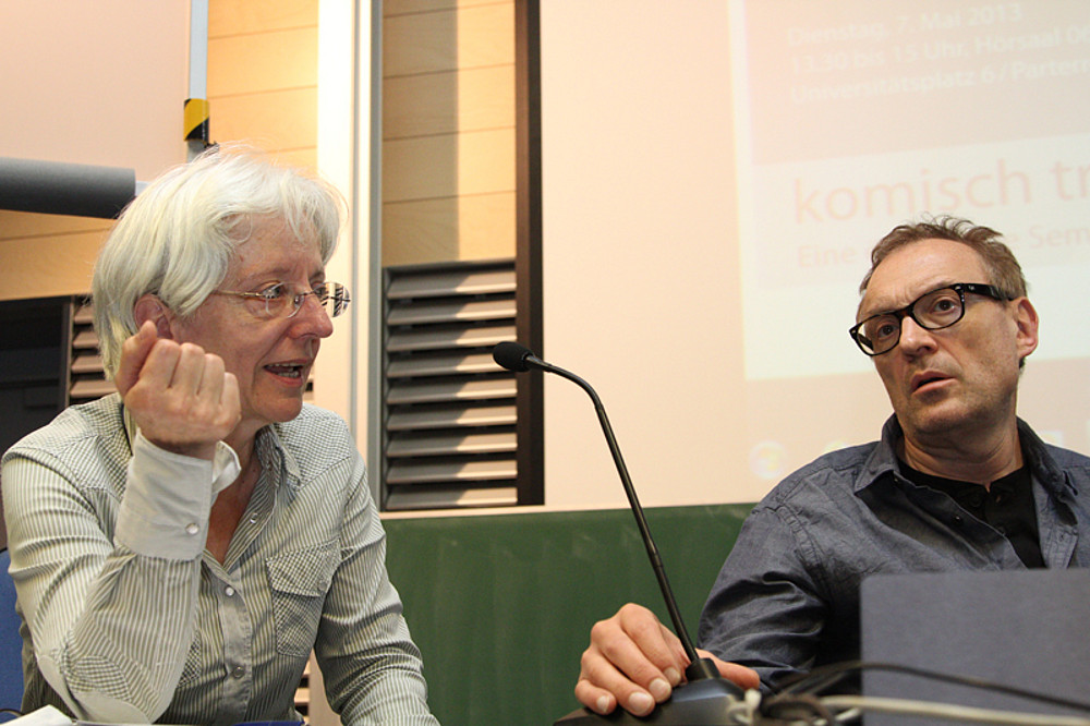 Als "Vivisektor des Humors" von der Initiatorin und Seminarleiterin, der Germanistin Ao.Univ.-Prof. Dr. Beatrix Müller-Kampel, vorgestellt, gab Hader Einblicke in seine privaten Schaffensprozesse wie auch in humoristische Mechanismen auf einer theoretischen Ebene.