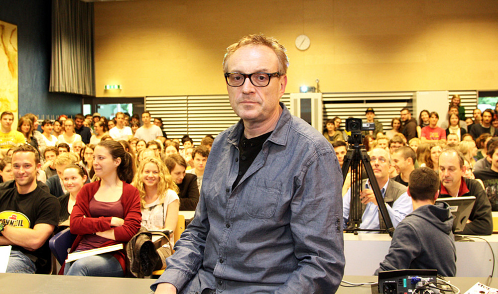 Darf die Satire alles? Wieso wirkt das Tragische komisch? Und: Warum lacht das Publikum manchmal an den "falschen" Stellen? 90 Minuten lang stellte sich der Kabarettist, Autor und Schauspieler Josef Hader den zahlreichen Fragen der (Germanistik-)Studierenden gestern in einer öffentlichen Vorlesung an der Uni Graz.