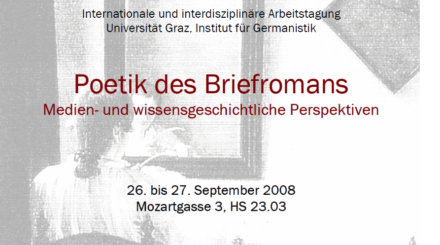 Universität Graz Geisteswissenschaftliche Fakultät Institut für Germanistik Neuigkeiten Poetik des Briefromans. Medien- und wissensgeschichtliche Perspektiven